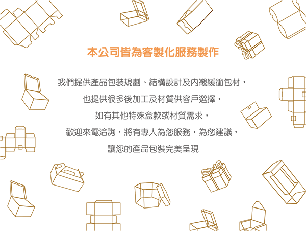 材質類型 : 精細紋理美術紙/ 銅版紙/牛皮紙/白卡/金銀卡紙等.... 其他材質需求,歡迎來電洽詢